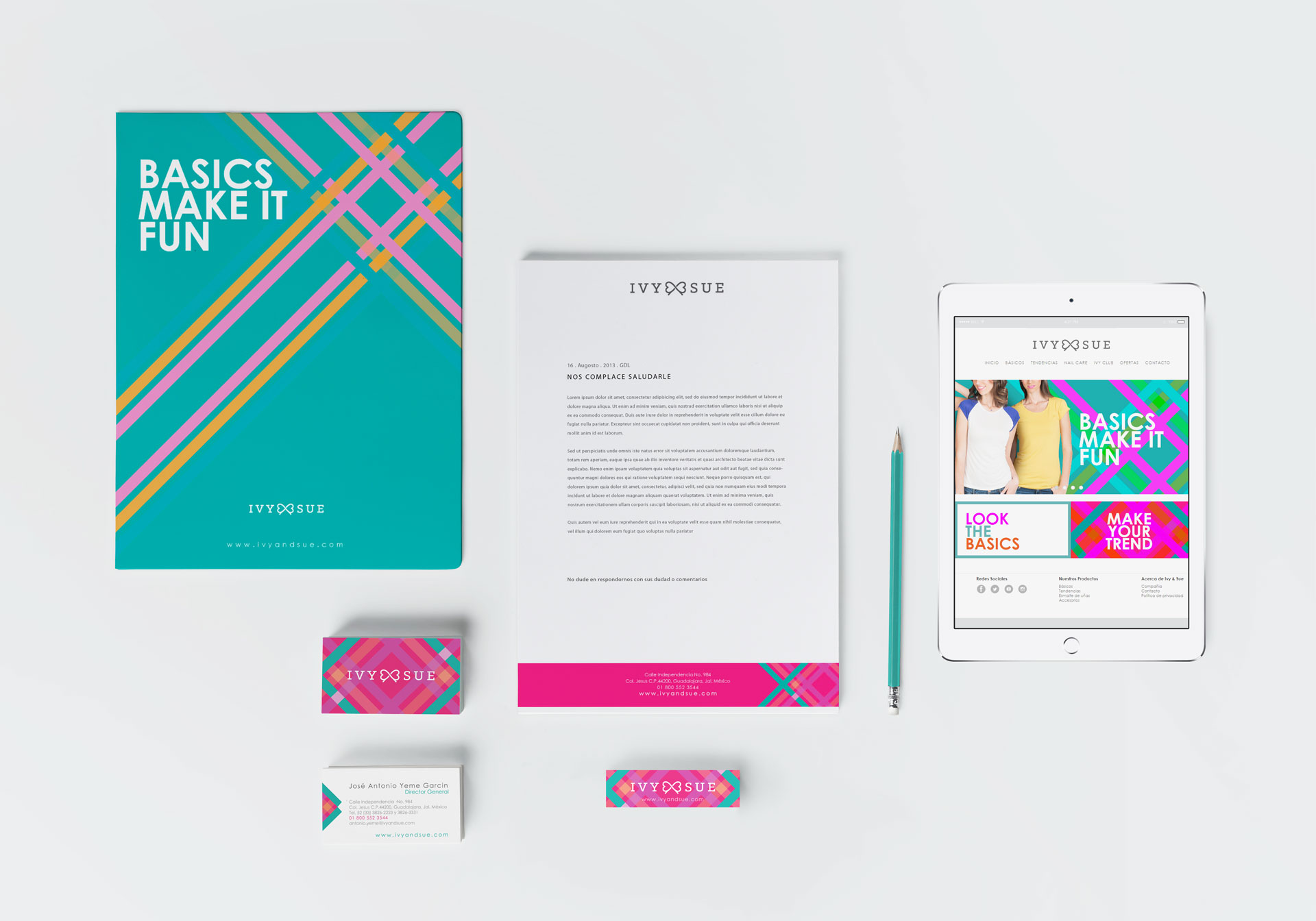 Proyecto integral de diseño que incluye papelería básica, diseño textil y página Web responsiva.
